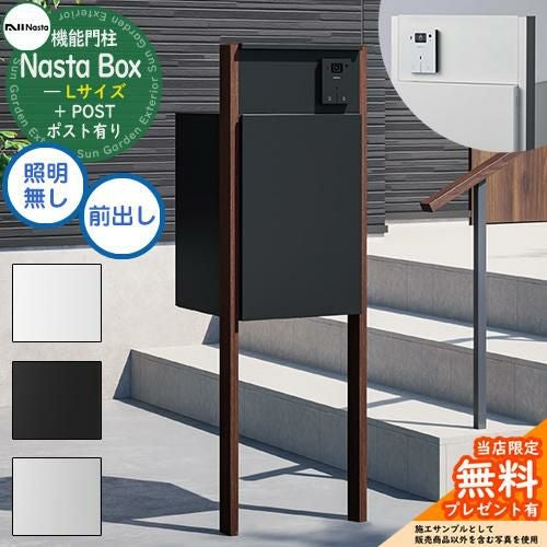 宅配ボックス 一戸建て用 大容量 Nasta Box + POST 門柱タイプ LED照明:無し 宅配ボックス:Lサイズ 標準色 支柱:木目色 前入前出