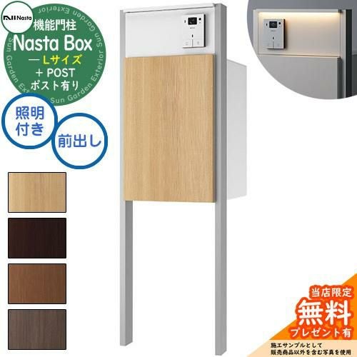 宅配ボックス 一戸建て用 大容量 Nasta Box + POST 門柱タイプ LED照明:付き 宅配ボックス:Lサイズ 木目色 支柱:シルバー 前入前出