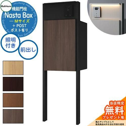 宅配ボックス 一戸建て用 大容量 Nasta Box + POST 門柱タイプ LED照明:付き 宅配ボックス:Mサイズ 木目色 支柱:マットブラック 前入前出