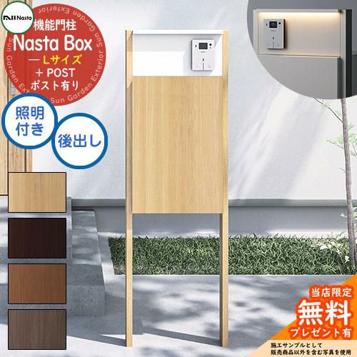 宅配ボックス 一戸建て用 大容量 Nasta Box + POST 門柱タイプ LED照明:付き 宅配ボックス:Lサイズ 木目色 支柱:木目色 前入後出
