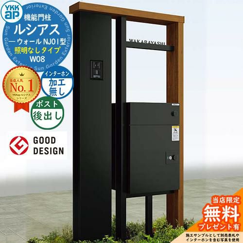 YKKap 機能門柱 ルシアス ウォールNJ01型 W08 照明なしタイプ インターホン加工なし