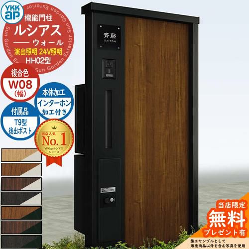 YKKap 機能門柱 ルシアス ウォールHH02型 W08 演出照明タイプ(24V照明) T9型・宅配ボックスセット