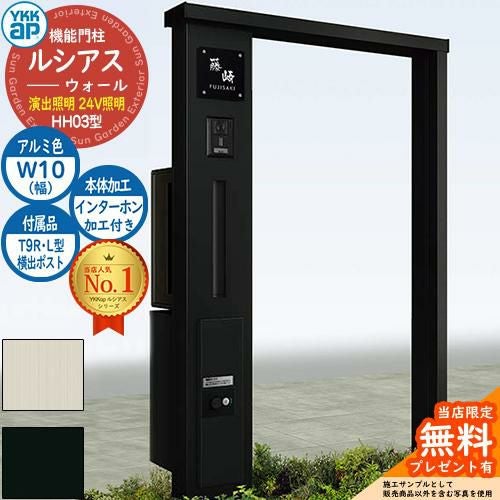YKKap 機能門柱 ルシアス ウォールHH03型 W10 演出照明タイプ(24V照明) T9R(L)型・宅配ボックスセット