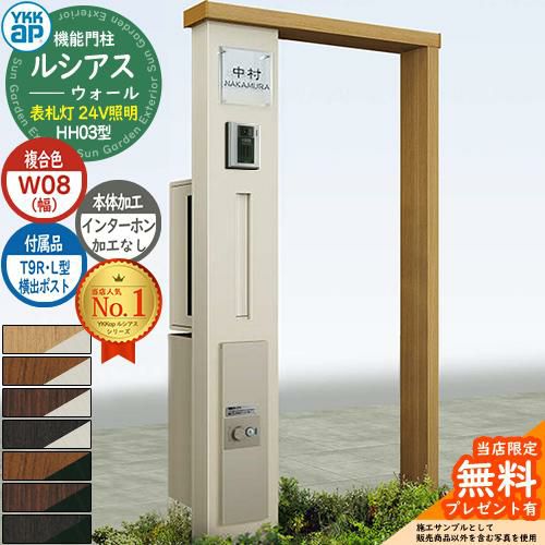 YKKap 機能門柱 ルシアス ウォールHH03型 W08 表札灯タイプ(24V照明) T9R(L)型・宅配ボックスセット