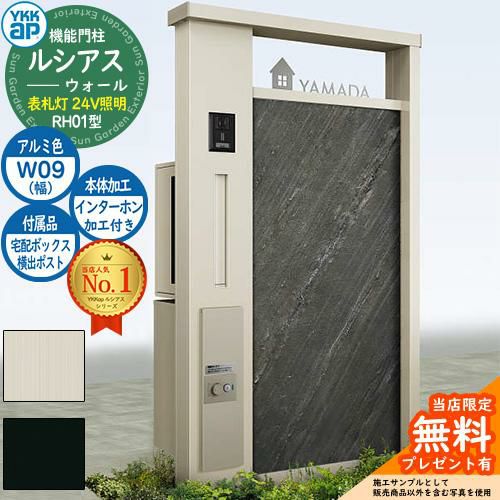 YKKap 機能門柱 ルシアス ウォールRH01型 W09 表札灯タイプ(24V照明) T9R(L)型・宅配ボックスセット