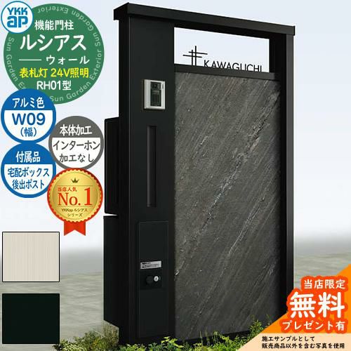 YKKap 機能門柱 ルシアス ウォールRH01型 W09 表札灯タイプ(24V照明) T9型・宅配ボックスセット