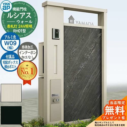 YKKap 機能門柱 ルシアス ウォールRH01型 W09 表札灯タイプ(24V照明) T9R(L)型・宅配ボックスセット