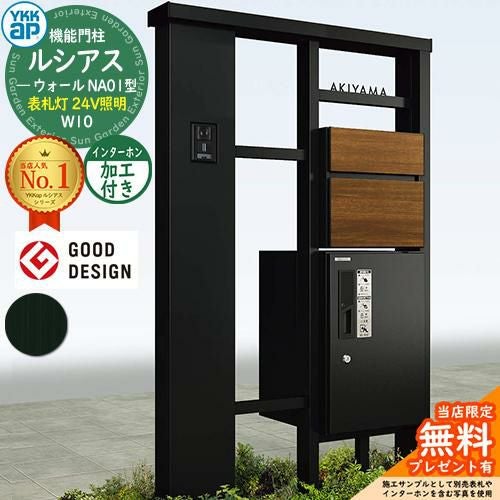 YKKap 機能門柱 ルシアス ウォールNA01型 W10 表札灯タイプ(24V照明) インターホン加工付き