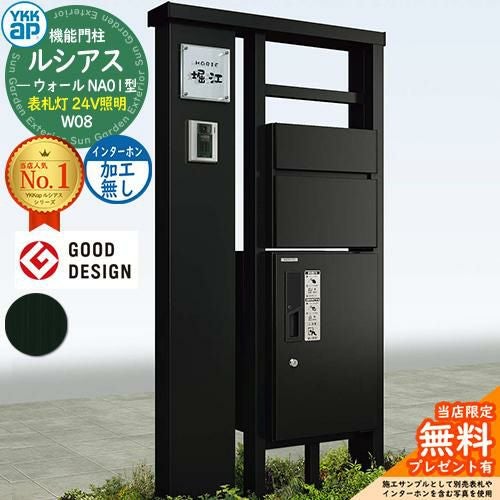 YKKap 機能門柱 ルシアス ウォールNA01型 W08 表札灯タイプ(24V照明) インターホン加工なし