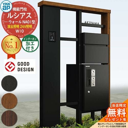 YKKap 機能門柱 ルシアス ウォールNA01型 W10 演出照明タイプ(24V照明) インターホン加工付き