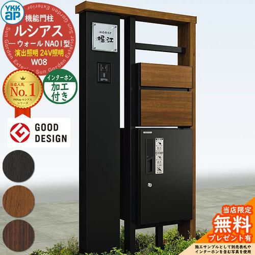 YKKap 機能門柱 ルシアス ウォールNA01型 W08 演出照明タイプ(24V照明) インターホン加工付き