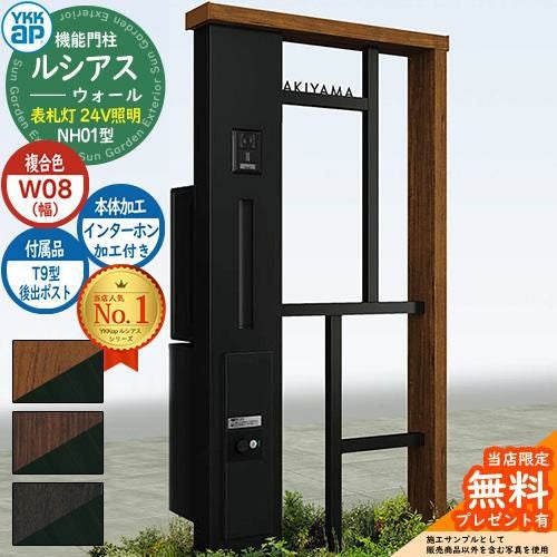 YKKap 機能門柱 ルシアス ウォールNH01型 W08 表札灯タイプ(24V照明) T9型・宅配ボックスセット