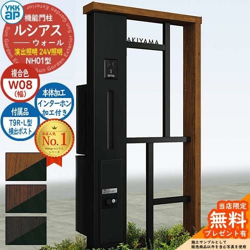 YKKap 機能門柱 ルシアス ウォールNH01型 W08 演出照明タイプ(24V照明) T9R(L)型・宅配ボックスセット