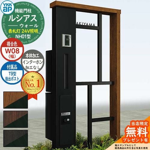 YKKap 機能門柱 ルシアス ウォールNH01型 W08 表札灯タイプ(24V照明) T9型・宅配ボックスセット