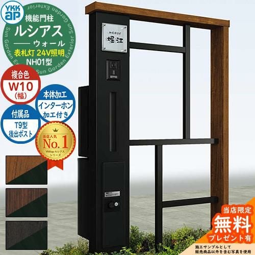 YKKap 機能門柱 ルシアス ウォールNH01型 W10 表札灯タイプ(24V照明) T9型・宅配ボックスセット