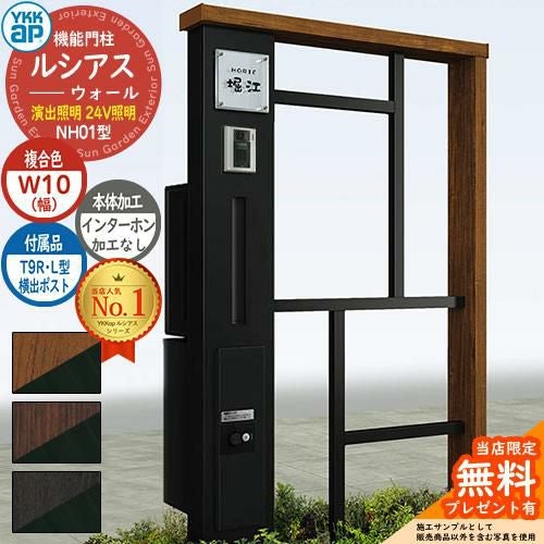 YKKap 機能門柱 ルシアス ウォールNH01型 W10 演出照明タイプ(24V照明) T9R(L)型・宅配ボックスセット