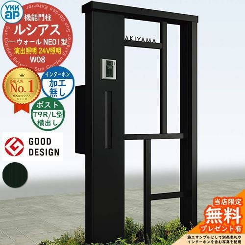 YKKap 機能門柱 ルシアス ウォールNE01型 W08 演出照明タイプ(24V照明) T9R(L)型セット