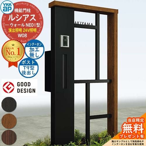 YKKap 機能門柱 ルシアス ウォールNE01型 W08 演出照明タイプ(24V照明) T9型セット