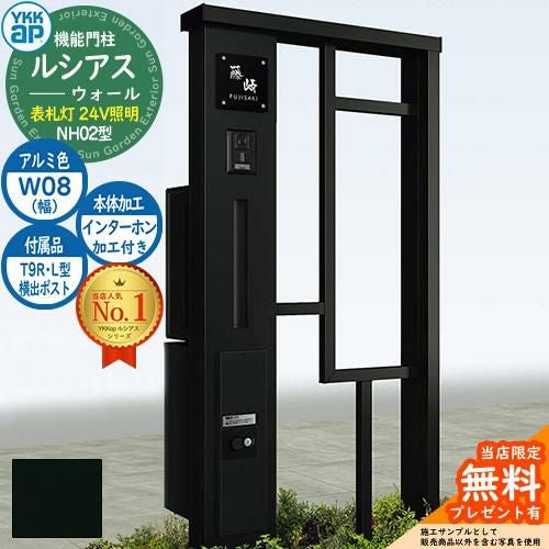 YKKap 機能門柱 ルシアス ウォールNH02型 W08 表札灯タイプ(24V照明) T9R(L)型・宅配ボックスセット