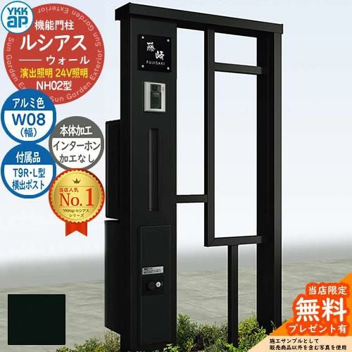 YKKap 機能門柱 ルシアス ウォールNH02型 W08 演出照明タイプ(24V照明) T9R(L)型・宅配ボックスセット