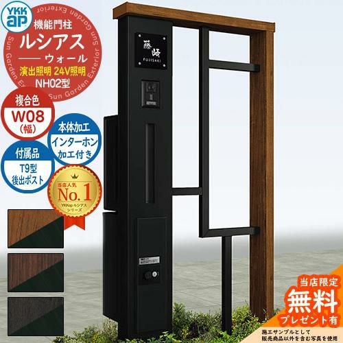 YKKap 機能門柱 ルシアス ウォールNH02型 W08 演出照明タイプ(24V照明) T9型・宅配ボックスセット