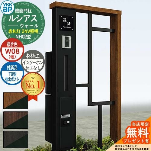 YKKap 機能門柱 ルシアス ウォールNH02型 W08 表札灯タイプ(24V照明) T9型・宅配ボックスセット