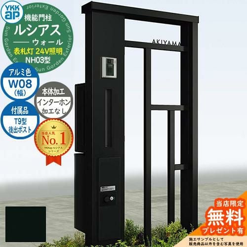 YKKap 機能門柱 ルシアス ウォールNH03型 W08 表札灯タイプ(24V照明) T9型・宅配ボックスセット