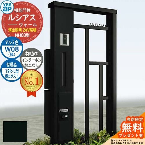 YKKap 機能門柱 ルシアス ウォールNH03型 W08 演出照明タイプ(24V照明) T9R(L)型・宅配ボックスセット