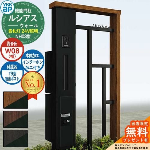 YKKap 機能門柱 ルシアス ウォールNH03型 W08 表札灯タイプ(24V照明) T9型・宅配ボックスセット