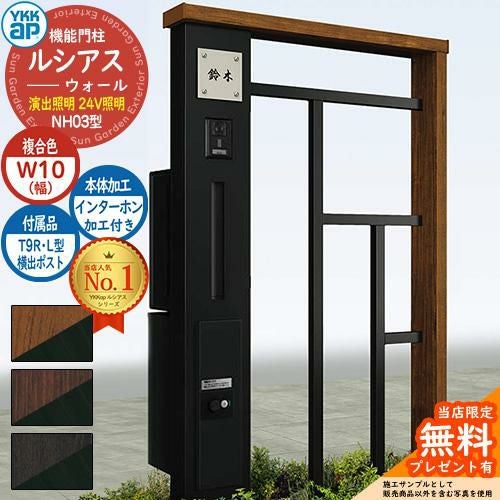 YKKap 機能門柱 ルシアス ウォールNH03型 W10 演出照明タイプ(24V照明) T9R(L)型・宅配ボックスセット