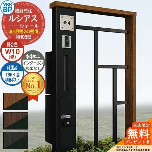 YKKap 機能門柱 ルシアス ウォールNH03型 W10 演出照明タイプ(24V照明) T9R(L)型・宅配ボックスセット