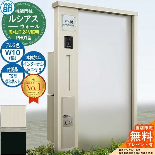 YKKap 機能門柱 ルシアス ウォールPH01型 W10 表札灯タイプ(100V照明) T9型・宅配ボックスセット