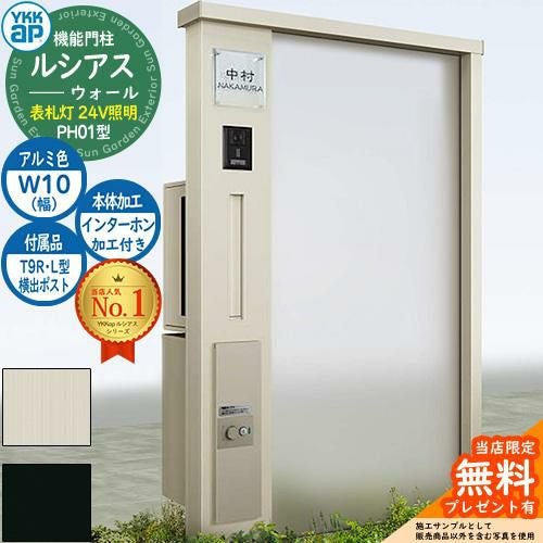 YKKap 機能門柱 ルシアス ウォールPH01型 W10 表札灯タイプ(100V照明) T9R(L)型・宅配ボックスセット