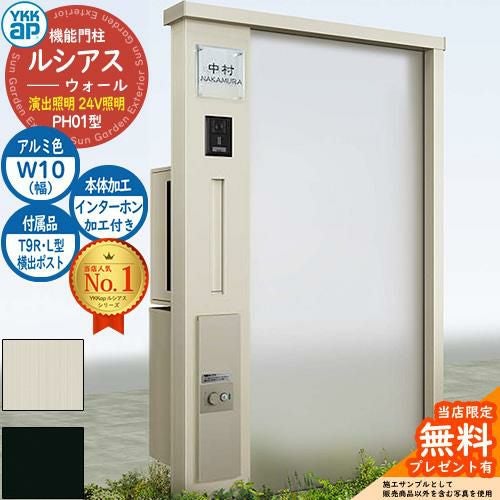 YKKap 機能門柱 ルシアス ウォールPH01型 W10 演出照明タイプ(100V照明) T9R(L)型・宅配ボックスセット