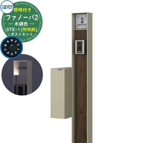 機能ポール ファノーバ 木調色 照明内蔵・STE-1型(後出し:防犯)セット