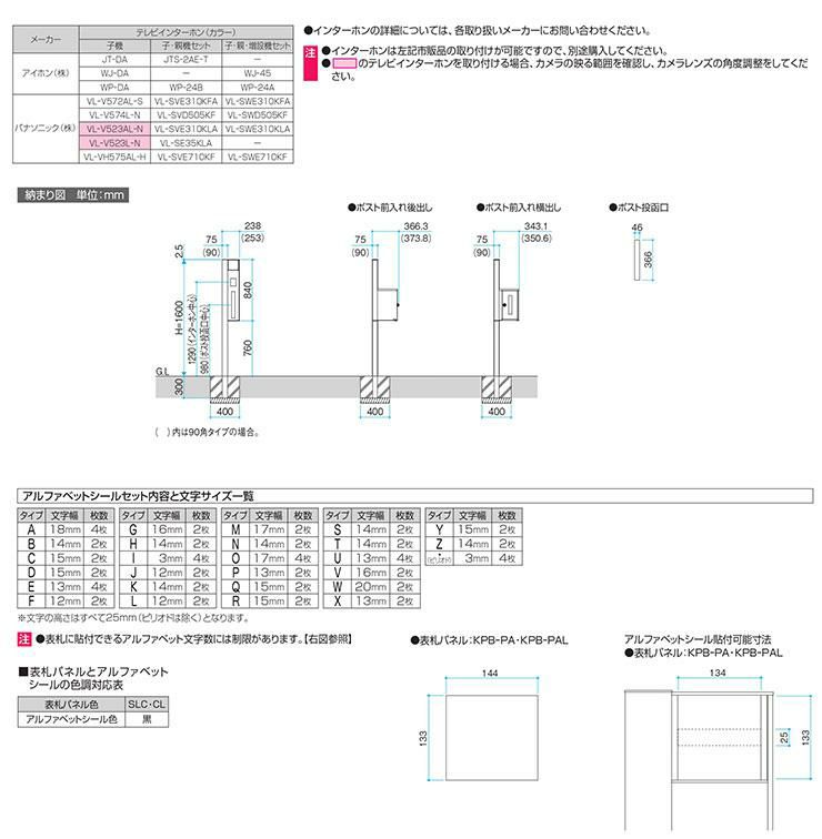ポール本体+表札+ポスト(前入れ前出し・プッシュ錠仕様)