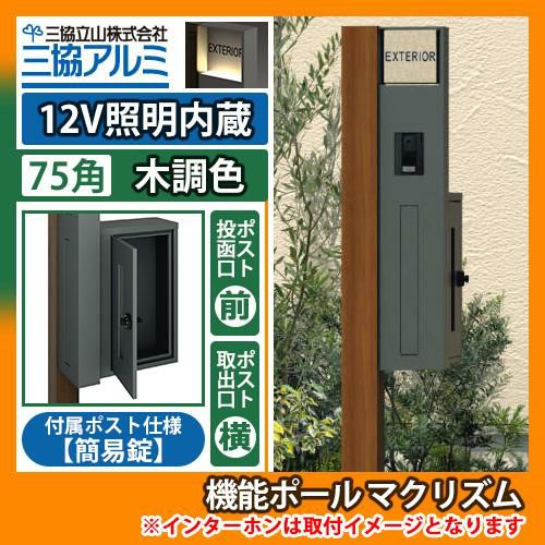 機能ポール フレムス Classic(クラシック) 2型 Cセット 木調+アルミ形材 宅配ボックス:ハーフ 前入れ前出し