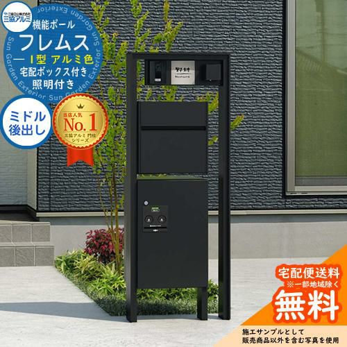 機能ポール フレムス Classic(クラシック) 1型 Aセット アルミ形材 宅配ボックス:ミドル 前入れ前出し