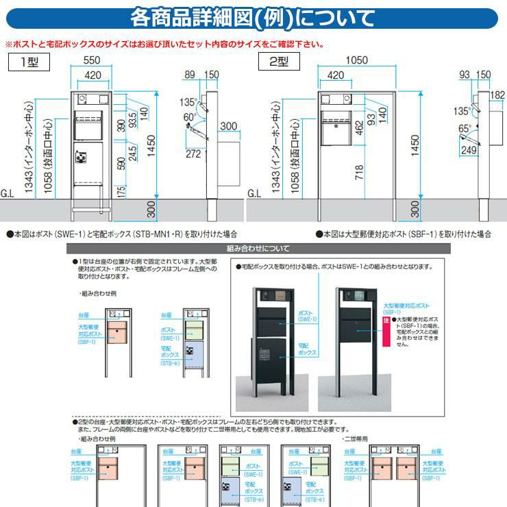 機能ポール フレムス Classic(クラシック) 2型 Bセット アルミ形材 宅配ボックス:ハーフ 前入れ前出し
