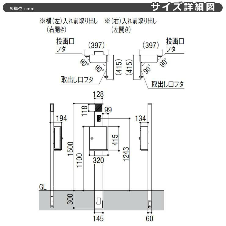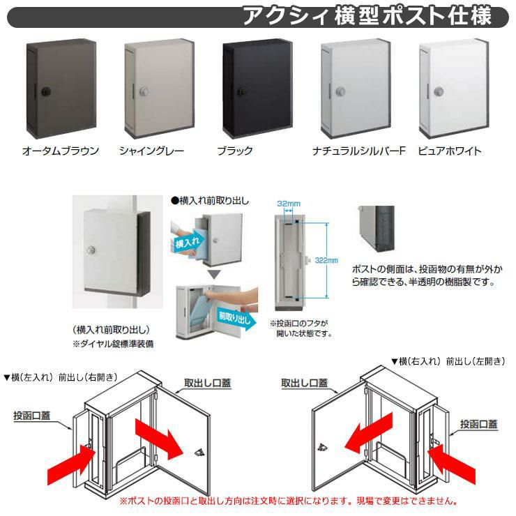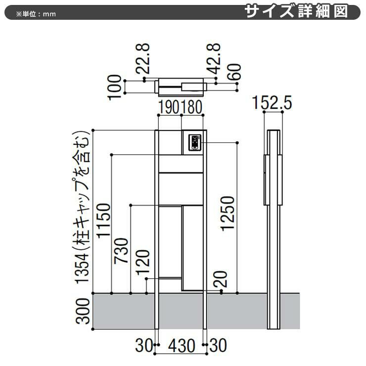 ポール本体+表札+ポスト(前入れ横出し・簡易錠仕様)