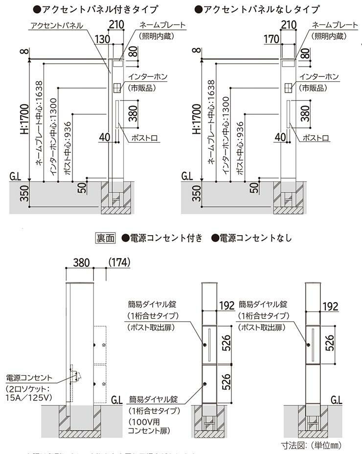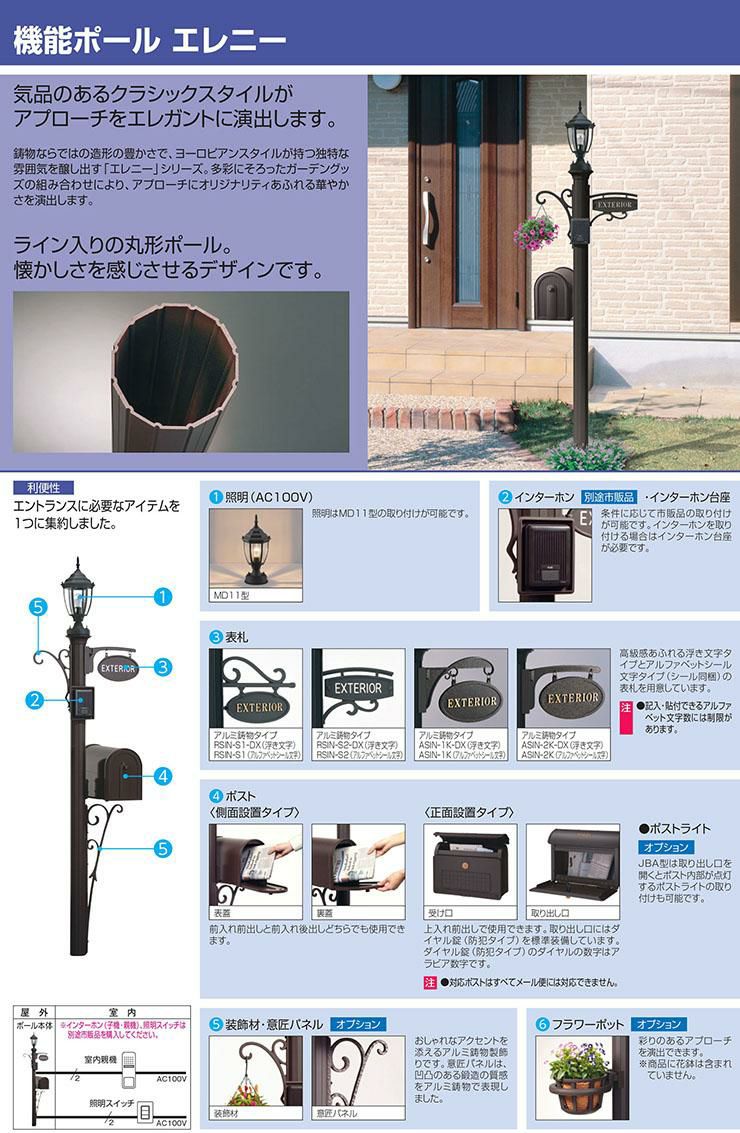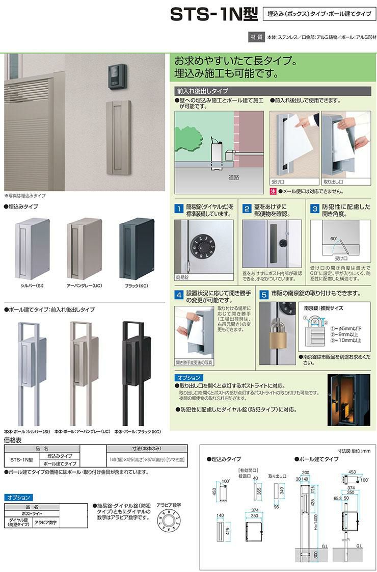 ポール本体+表札+ポスト(前入れ前出し・プッシュ錠仕様)