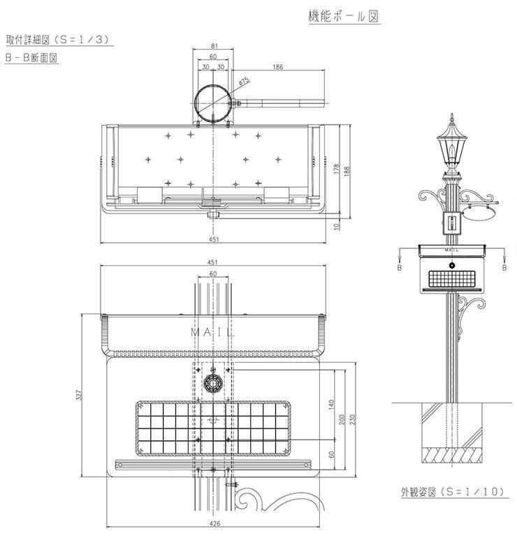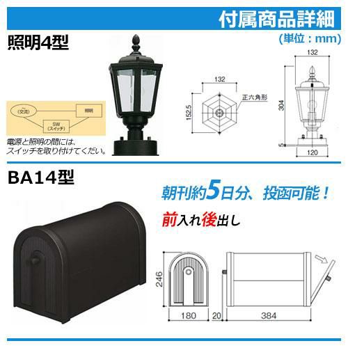ポストBA14型(前入れ後出し)+LED照明4V型+表札
