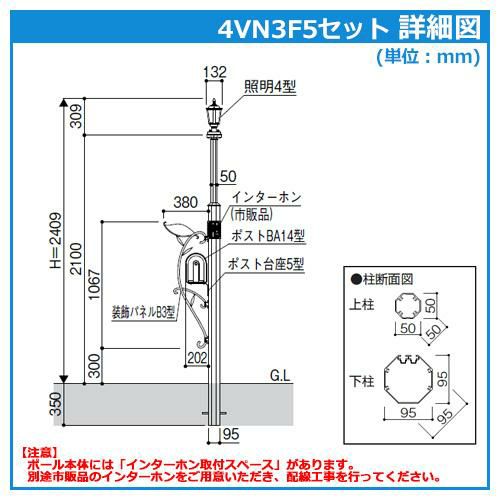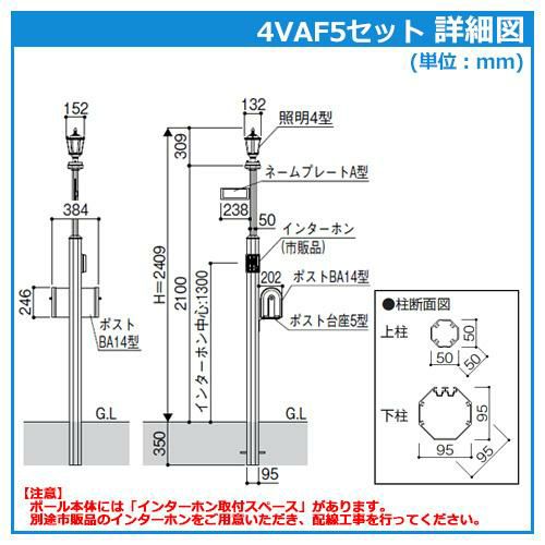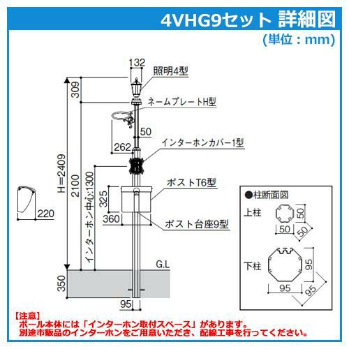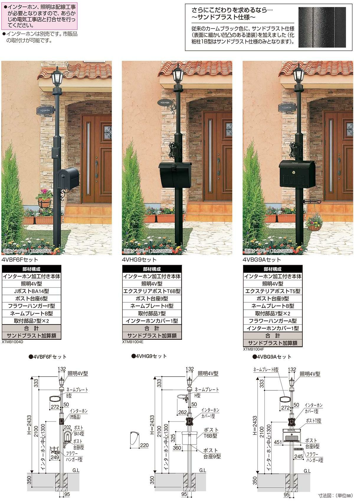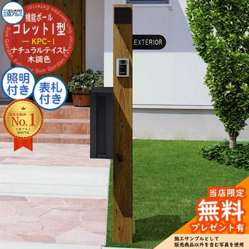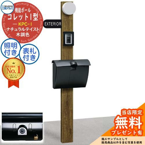 ポール+ポスト+照明+表札 4点セット