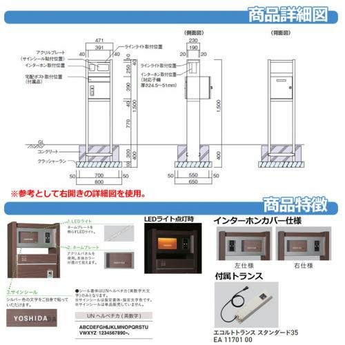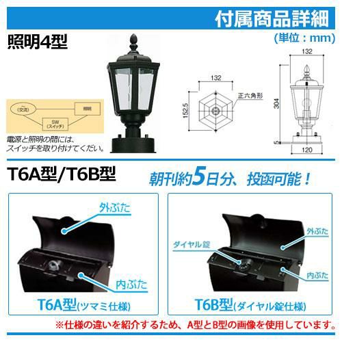 ポストT6B型(上入れ上出し:ダイヤル錠仕様)+LED照明4V型+表札