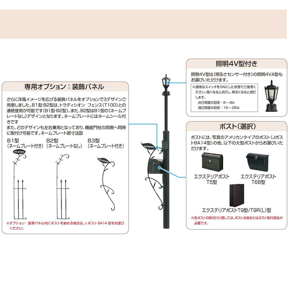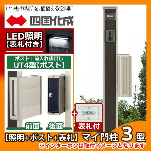 ポストT5型(上入れ前出し)+LED照明4V型+表札
