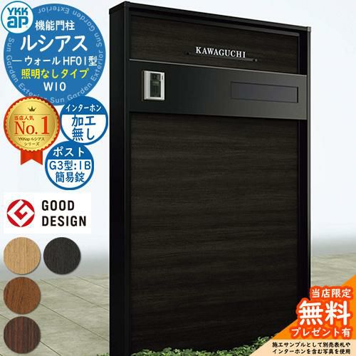 YKKap 機能門柱 ルシアス ウォールHF01型 W10 照明なしタイプ G3型 1B(簡易錠)セット