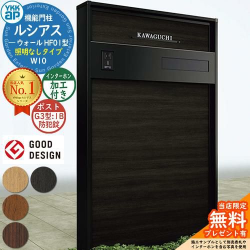YKKap 機能門柱 ルシアス ウォールHF01型 W10 照明なしタイプ G3型 1B(防犯錠)セット