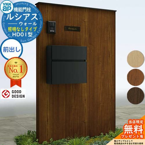 門柱 ポスト 機能門柱 ルシアスウォール HD01型 ポスト正面納まり 照明なしタイプ 本体:複合色(木調パネル) エクステリアポストT10型(アルミ色)
