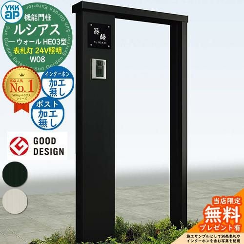 YKKap 機能門柱 ルシアス ウォールHE03型 W08 表札灯タイプ(24V照明)