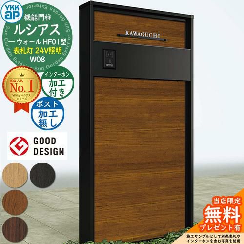 YKKap 機能門柱 ルシアス ウォールHF01型 W08 表札灯タイプ(24V照明)